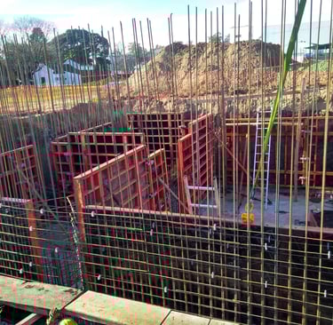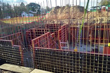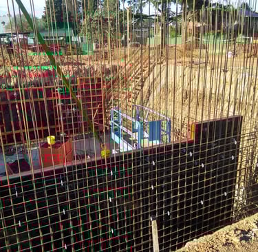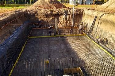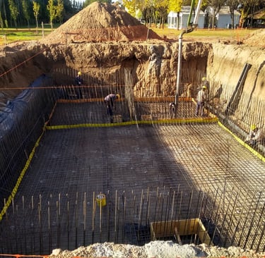 Plateas de hormigón armado y trabajos civiles en plantas industriales, incluyendo preparación de terreno, armado estructural, nivelación y tareas de adecuación según los requerimientos de cada instalación.