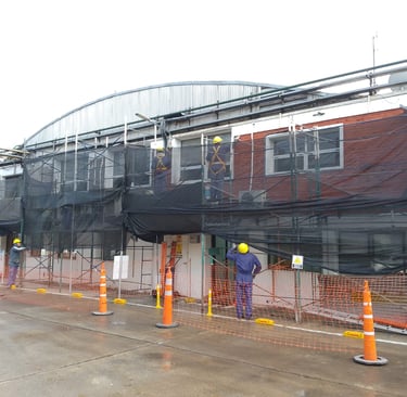 Trabajos de mantenimiento y acondicionamiento de fachadas interiores, incluyendo preparación de superficies, correcciones constructivas y control de ejecución.